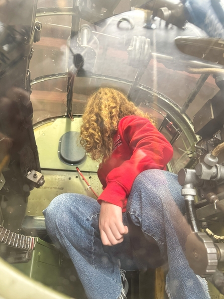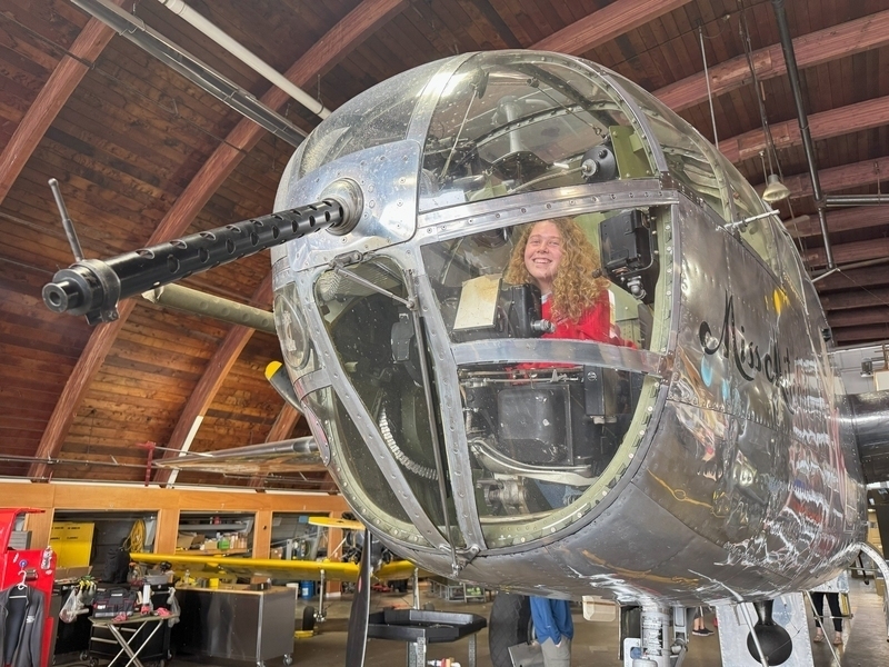 The other unique thing was that they let visitors climb into the B-25 and even go inside the gunner’s nose turret! Nia was beside herself with excitement. Here she is rooting around inside checking it all out.