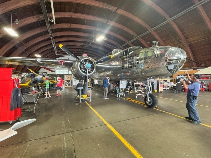 What struck me most about the place was the vibe. There were no less than 25 retired and current aviation people there working on the planes and talking to visitors. Yesterday, in particular, they were preparing the plane to fly to Eau Claire, WI for the Chippewa Valley Air Show that’s taking place this weekend.