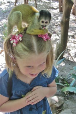 The highlight of our visit was this interactive Monkey area. We were expecting to just get to observe the monkeys up close, but we weren’t in there one minute and they were already leaping out of the trees onto my backpack. It was quite startling! And they were smart little things. They knew how to unzip my backpack and were trying to take Nia’s hairclips out. They required very close monitoring!